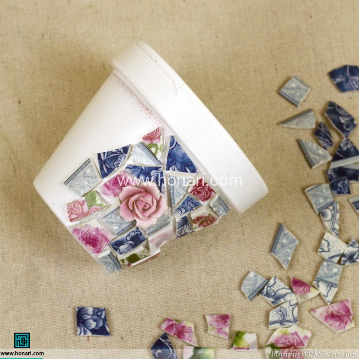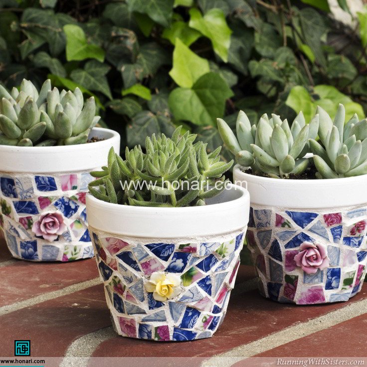 این هم از آموزش کاشی شکسته روی گلدان. حالا گلدان زیبا و منحصربهفرد شما آماده است.