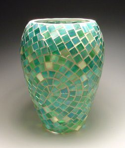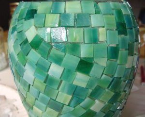 تكنیك معرق كاشی روی گلدان شیشه ای