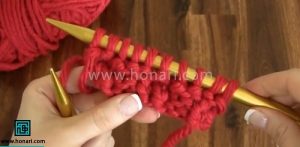 آموزش گام به گام و تصویری بافتنی: روش بافت دانه جودانه دوبل با دو میل