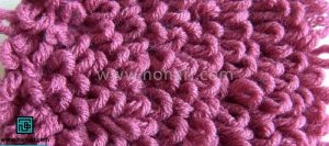 (در اولین و آخرین دانه هر رج، حلقه درنمیآوریم و فقط بافت ساده انجام میدهیم تا بعداً برای اتصال قطعات به مشکل برنخوریم.)
