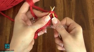 برای بافتنی بعدی، یک دانه را به صورت زیر از رج قبلی بردارید و بدون بافتن، به میل راست منتقل کنید.